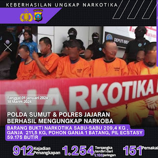 Komit berantas Narkoba, Direktorat (Dit) Narkoba Polda Sumut bersama jajarannya mengungkap sebanyak 912 kasus jaringan peredaran narkotika dalam kurun waktu tiga bulan mulai 1 Januari-18 Maret 2024.