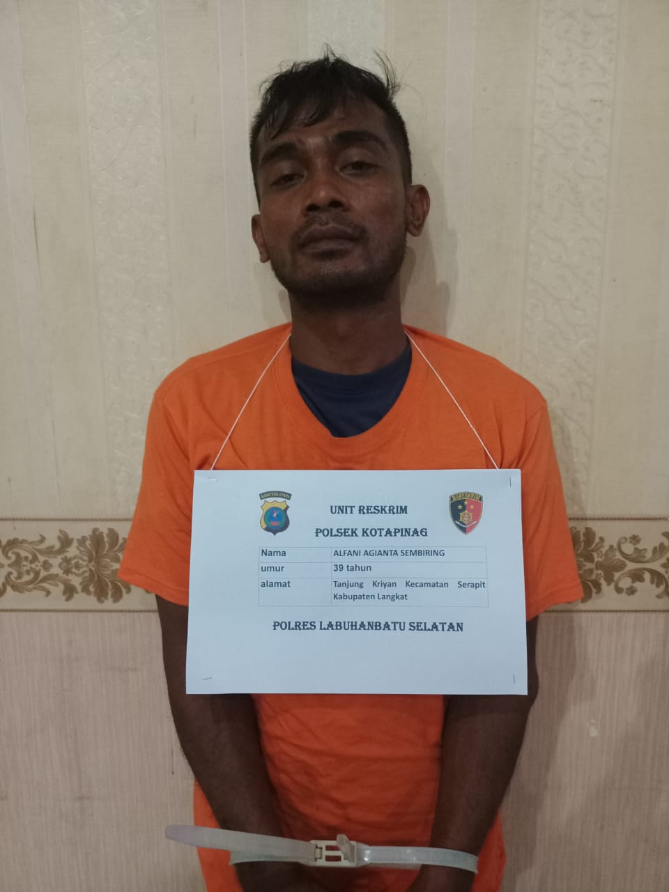 Selanjutnya, pada 7 Desember 2024 sekira pukul 11.40 WIB dilakukan penangkapan di Jalan Tomu Tua Lingkungan Kampung Malim Kelurahan Kota Pinang, Kecamatan Kota Pinang, Labusel.